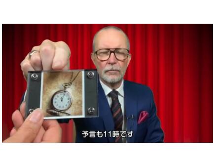 The magician shows a punched card with the shape "?" (question mark) then put it in the wallet and the wallet was also held by the spectator.